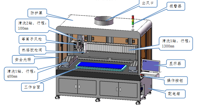 一、等離子清洗膠水機機器工序流程為:人手將產品放到定位治具內—按下啟動按鈕—進行清洗、點膠—清洗、點膠完成—人工取出成品—完成一個循環(huán)